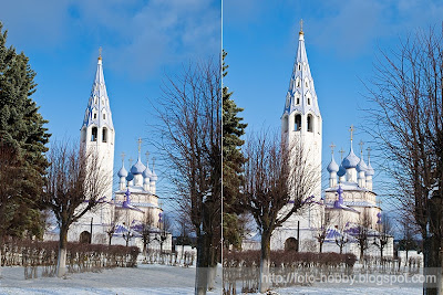 А чи не почати нам мова про помилки злобливих, котрі на фотолюбителів початківців аки таті нападають і силу їх знімків богатирську зрадницьки викрадають? ... Загалом, буде цикл заміток про найбільш поширені помилки і про те, як з ними боротися. Часто буває, що фотолюбитель бачить привабливий сюжет, підкидає камеру, тисне на кнопку ... і тільки вже переглядаючи кадри раптом виявляє, що стовпи, дерева, будівлі якось підозріло креняться. Звичайно, падаючі вежі є не тільки в Пізі. Похилені стовпи, тим більше, не рідкість. Але щоб все в одну сторону ... Та й горизонт ... Ех, схоже фотограф завалив кадр. Що найнеприємніше, глядач помічає навіть незначне відхилення горизонтальних і вертикальних ліній. Подивіться на знімок. Бачите? Такий нахил вже важко не помітити. Але чи великий він? Насправді, готуючи ілюстрації, я повернув цей кадр всього на 2 градуси! Так що розраховувати на те, що завал не помітять, не доводиться. А значить - перш ніж натиснути кнопку спуску, потрібно обов'язково звернути увагу на нахил камери. І допоможуть у цьому межі видошукача. Звичка «пробігати» за ним поглядом взагалі дозволяє уникнути цілого ряду помилок. Завал кадру - не виняток. Потрібно просто підрівняти горизонтальні та / або вертикальні лінії об'єкта за відповідними сторонах рамки. У багатьох камерах на дисплеї можна додатково включити сітку, ще більше спрощує вирівнювання камери. Ну, а якщо все-таки помилка допущена? Якщо між об'єктом зйомки і межами кадру є достатня відстань, а завал невеликий, все можна виправити. Практично всі програми для обробки фотографій (в тому числі, Picasa, GIMP і, звичайно ж, Photoshop) вміють обертати зображення. Ось і повертаємо його ... акуратненько .. акуратненько ... Щоб усе стало тютелька в тютельку, включаємо сітку. У крайньому випадку (раптом ще існують редактори, де немає цієї вкрай корисної функції?) В ролі «лінійки» може виступити, наприклад, прямокутне виділення або ... вікно будь-якої іншої програми. Природно, при повороті з'являються білі куточки. Їх - разом з частиною фотографії (саме тому потрібно, щоб був запас біля кордонів кадру) - потрібно зрізати. Заодно, можливо, трохи підправимо і композицію. Звичайно ж, за такої «операції» ми втратимо деяку кількість «мегапікселей». Але це, найчастіше, не страшно. Дозволи практично будь-якої сучасної камери вистачає для друку на формат А3, причому, з запасом. Ви часто друкуєте знімки такого розміру? Ну, от. Порівняйте, що в підсумку вийшло. Зліва - завалений кадр, праворуч - він же, але після повороту і кадрування. Але, між іншим, можна і свідомо «завалити» горизонт. І це вже буде не помилка, а зовсім навіть навпаки - художній прийом. Він часто використовується, щоб додати динаміки здавалося б абсолютно нерухомому за своєю суттю об'єкту. Тільки не варто намагатися оголошувати художнім прийомом свою помилку ;-) Не вийде. Щоб нахил заграв, він повинен бути досить великим - вже не 2-3, а градусів 20. До того ж, будь-який прийом хороший, якщо застосовано до місця, вписується в ідею і композицію фотографії ...